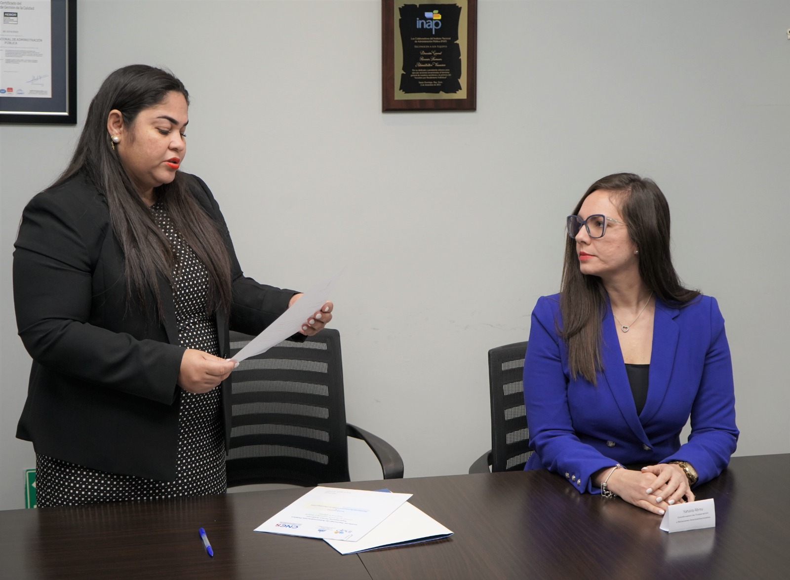 El Instituto Nacional de Administración Pública INAP realiza la entrega de la Acreditación del programa Sensibilización a la Plataforma de Concienciación en Ciberseguridad al Centro Nacional de Ciberseguridad (CNCS), entidad adscrita al Departamento Nacional de Investigaciones (DNI). Esta Acreditación fue formalizada y validada, conforme al marco establecido por la Ley No. 41-08 de Función Pública y el Reglamento del Instituto Nacional de Administración Pública (INAP) como parte del Sistema de Formación y Capacitación de los Servidores Públicos de la República Dominicana.