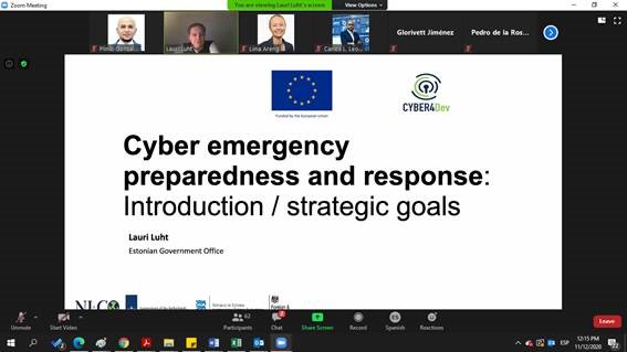 La apertura y cierre del evento se sostuvo a cargo de Liina Areng, Responsable del Proyecto Cyber4Dev de la Unión Europea, y el desarrollo de la formación se llevó a cargo del especialista Lauri Luht, Encargado del Centro de Crisis de la Oficina del Gobierno de Estonia.